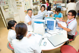 各専門スタッフが、カンファレンスにより、情報を共有化しながら、共通の目標を掲げ、入院生活や退院後の生活に向けて支援致します。