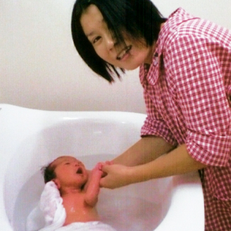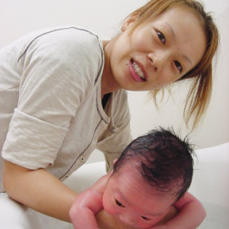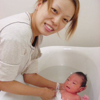 赤ちゃんの沐浴の練習風景です。もちろんパパもできます!